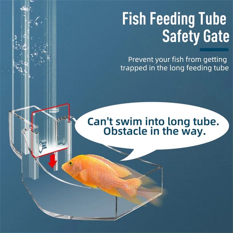 SAFE FEEDING: The safety gate at the bottom of the feeding tube can be adjusted up and down to prevent fish from getting stuck.
