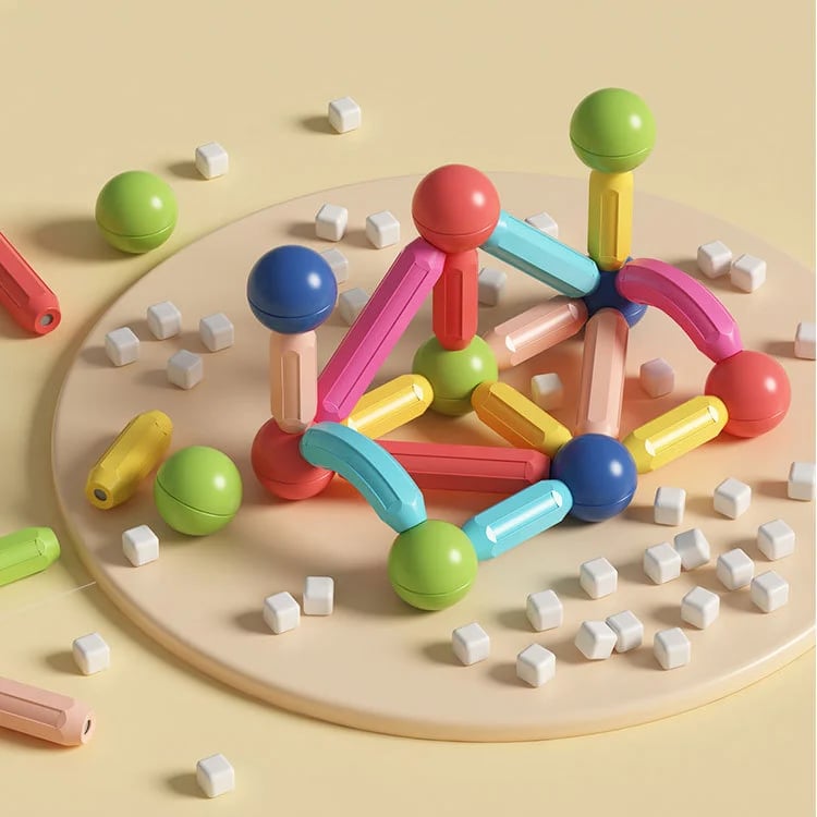 Educational Magnet Building Sticks & Balls Kit gives your children the experience they deserve – with 36/42/64 pieces in a variety of shapes, your child can choose between curved & straight shapes in different lengths, develop their creativity and plan intricate designs with our dazzling PASTEL COLORS, that ignite the imagination and give an artistic touch to every model, turning every day to a party with the balloon-like style of the magnets
